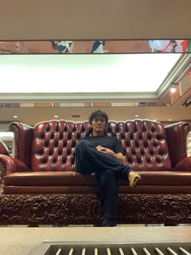お風呂から上がった後は立派な巨大ソファに座るのがお決まりルーティン。