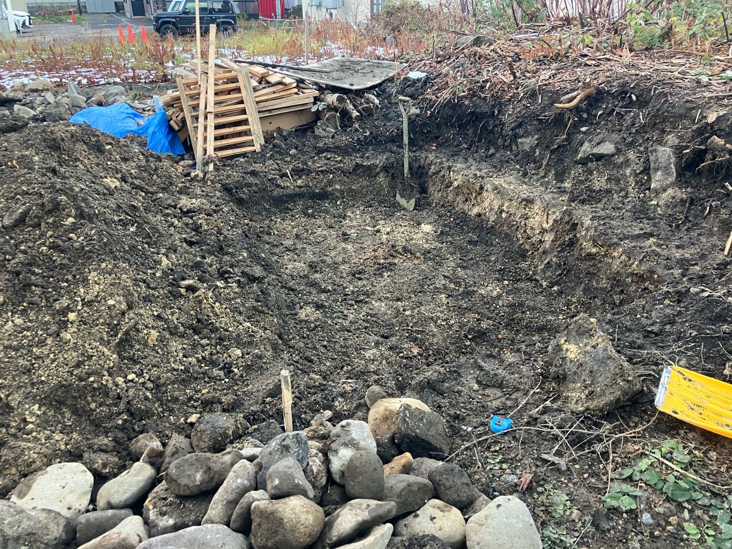 そこに砕石、スタイロフォーム、コンクリートを敷いてコンクリート駐車場を作ることもできそう。