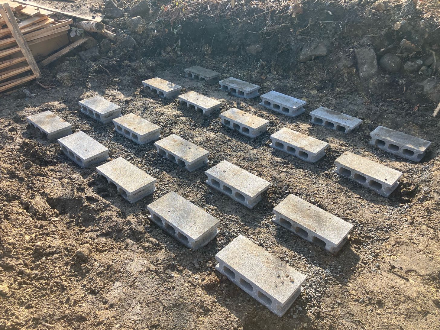 翌日朝早くから作業をして昨日の残りのブロックを並べた。